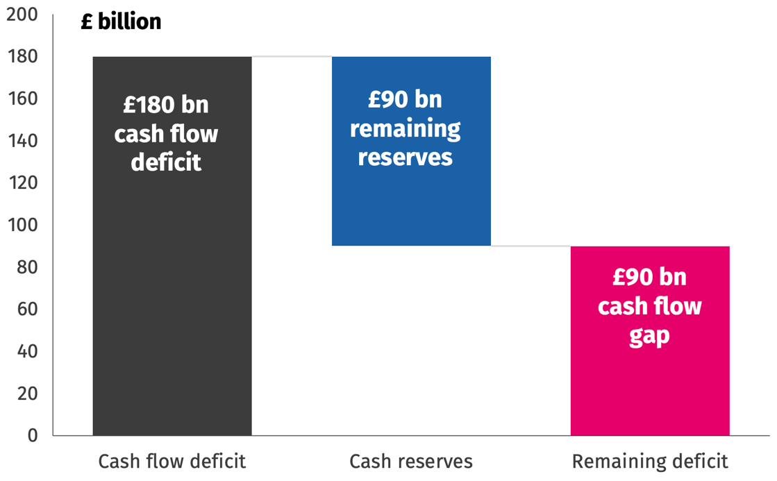 The report estimates an initial £45 billion of government funding would be needed – this would meet around 50 per cent of the cash flow crisis, with the other 50 per cent needing to be sourced from private borrowing.