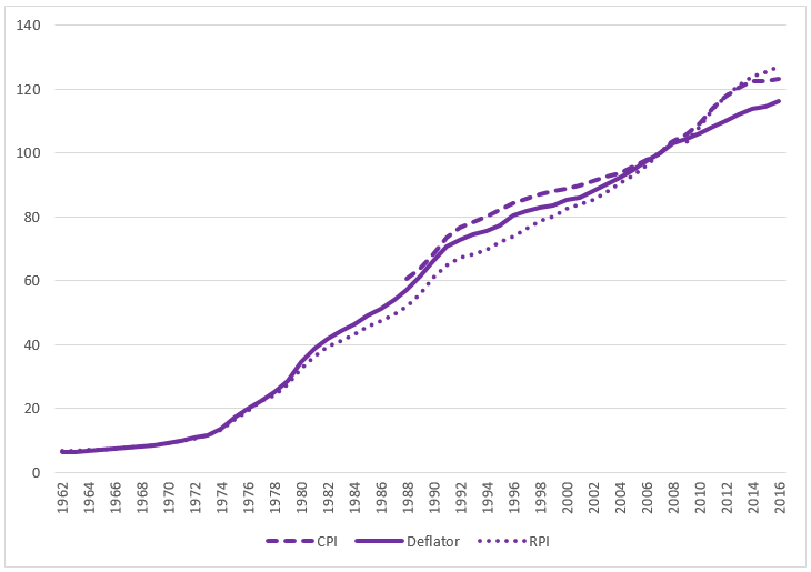 Source: Authors calculations based on ONS estimates for CPI, RPI and the GDP deflator