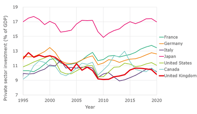 Private sector investment in the UK has fallen to the lowest level among G7 countries – fixing it will not be easy