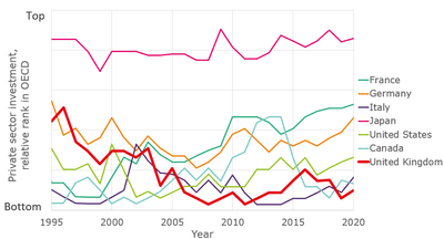 Figure 3: For the past two decades the UK has consistently ranked amongst the worst performers in the OECD for business investment