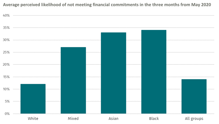 - People from minority ethnic communities put their chances of not being able to pay their bills over the three months from June at 27 to 34 per cent on average, compared to 14 per cent across the population.