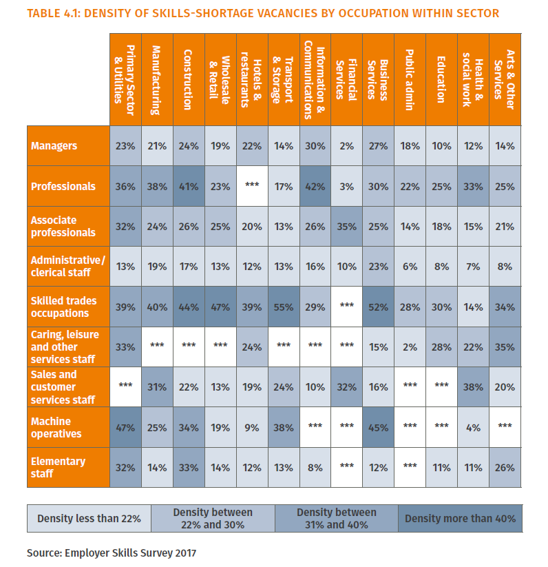 - Figure 4.1: Density of skills-shortage vacancies by occupation within sector