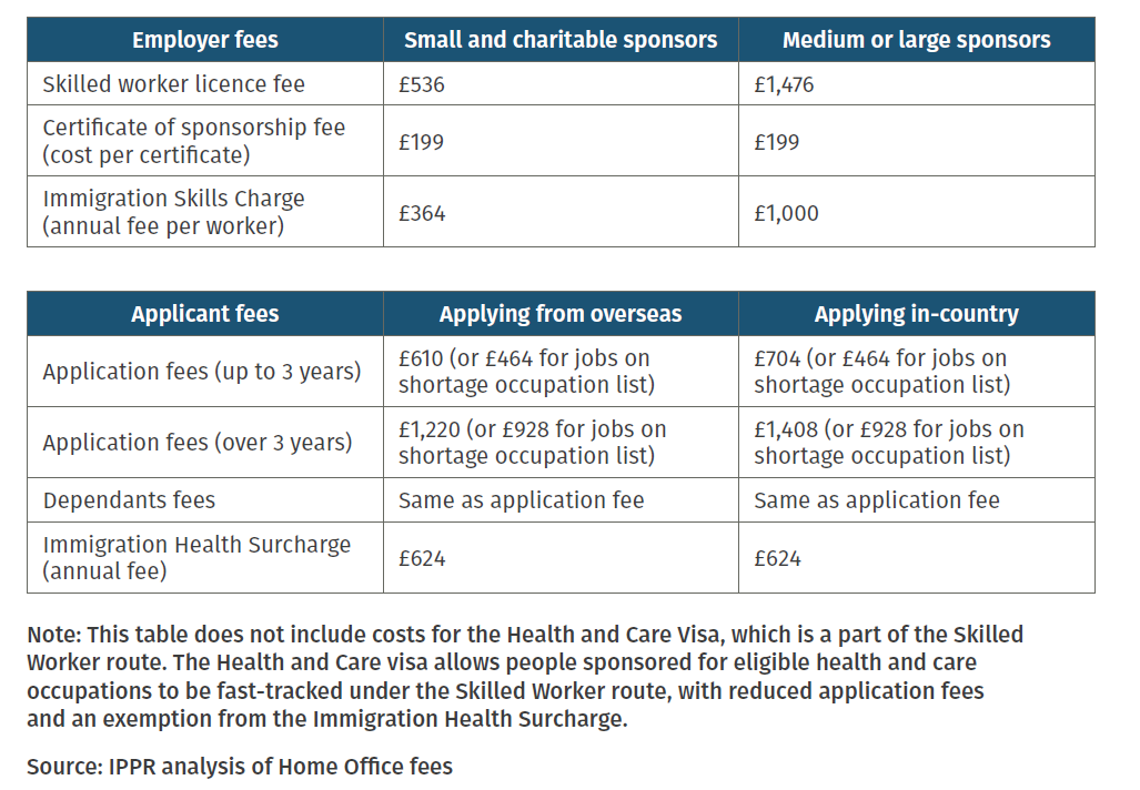- Table 3.3: Costs for employers and applicants under skilled worker visa. IPPR analysis of Home Office fees