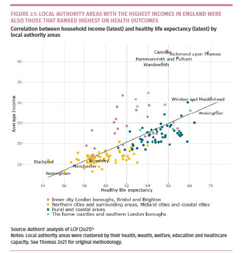 - Figure 2.1: Local Authority areas with the highest incomes in England were also those that ranked highest on health outcomes