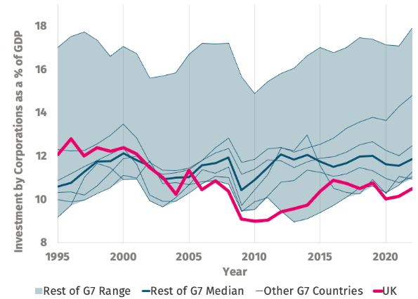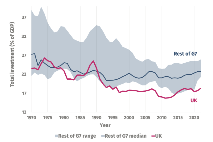 - UK has been bottom of the G7 league for investment in 24 out of last 30 years