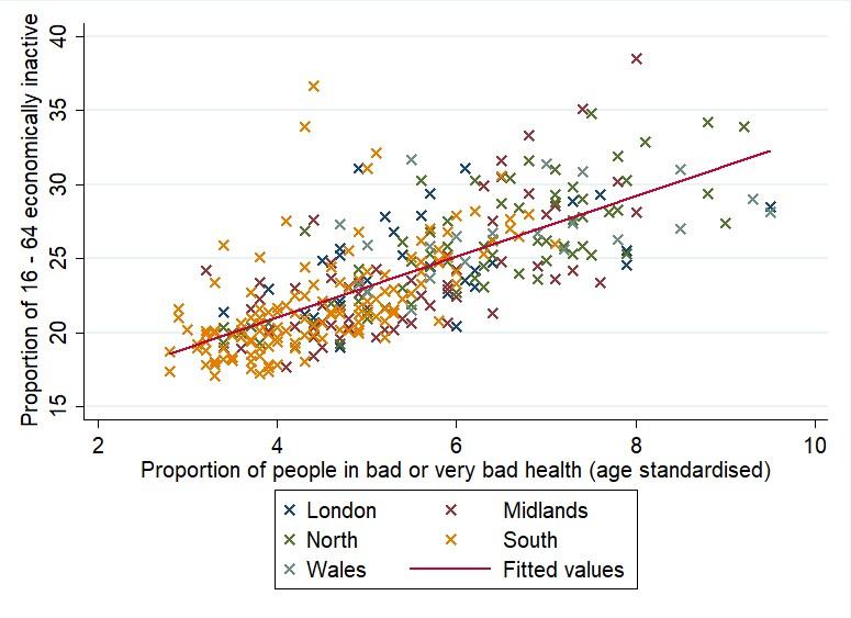 - GRAPH: Per cent of local authority population who are in bad or very bad health activities and those of working age who are economically inactive in England and Wales: CHP graph 2024