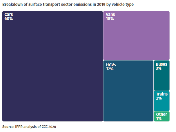 - IPPR analysis suggests the current approach to decarbonising transport in the UK could see a 28 per cent increase in car in use by 2050, and an 11 per cent increase in car traffic