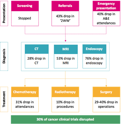 Figure 1: Disruptions to cancer services across the pathway due to the Covid-19 pandemic